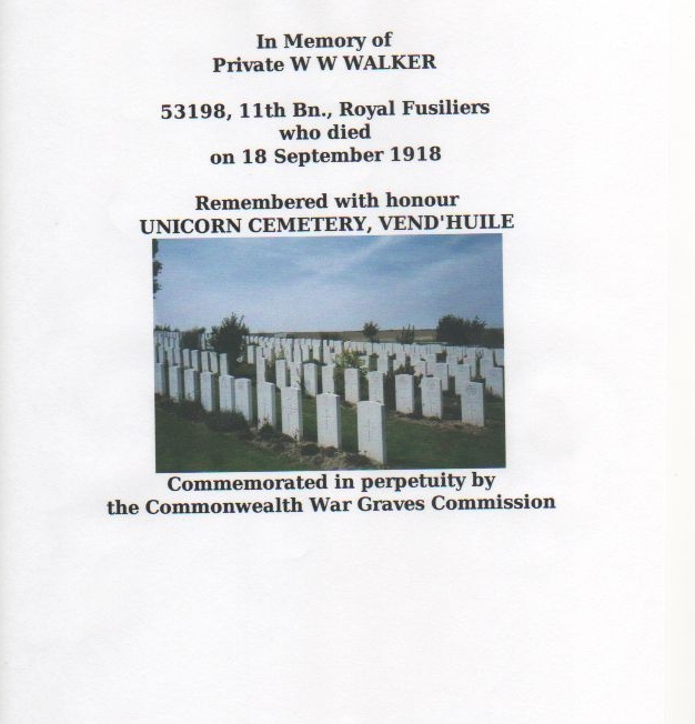 They had a son in October 1914, William Walter Robert Walker in Isleworth.